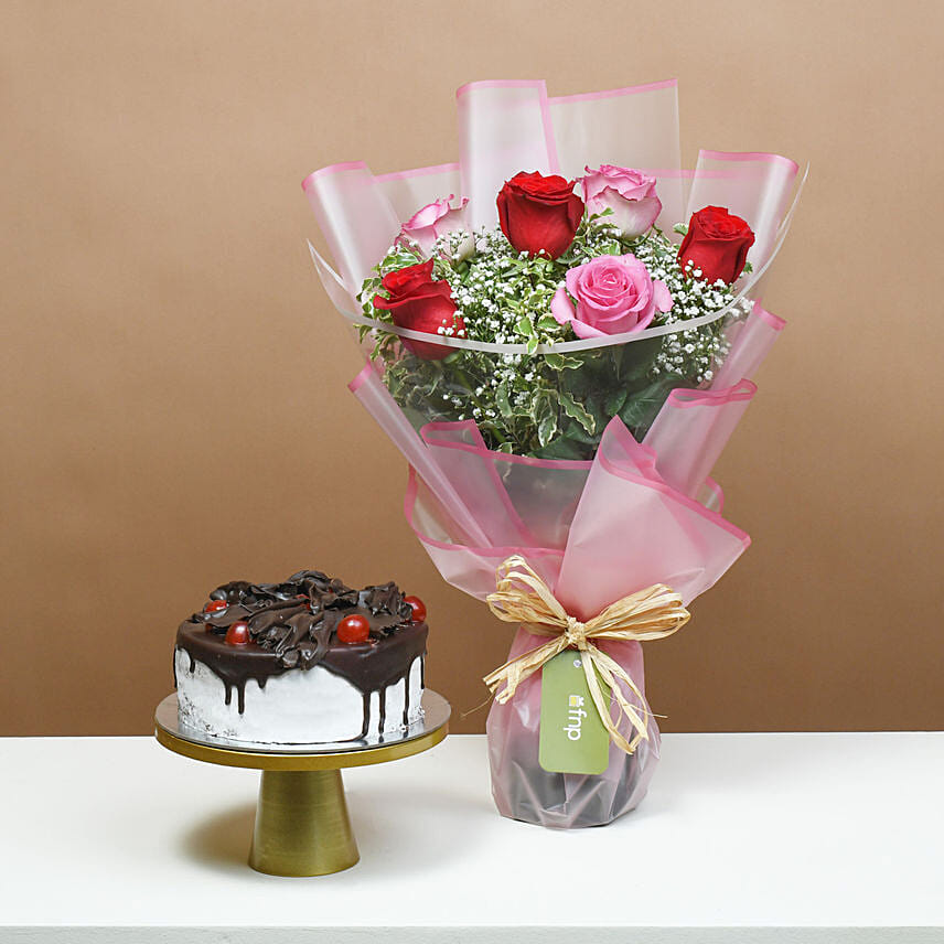 Loves Blushing Roses with Black Forest Cake
