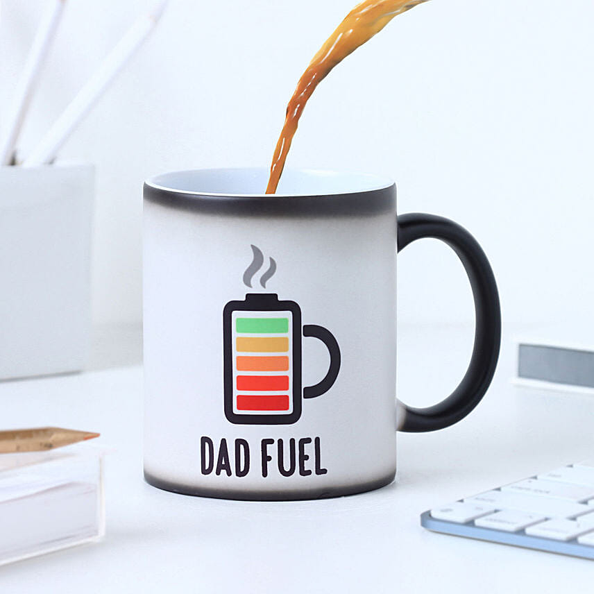 • The exterior is black when the mug is empty and cool. Personalisation appears when hot liquid is poured inside.