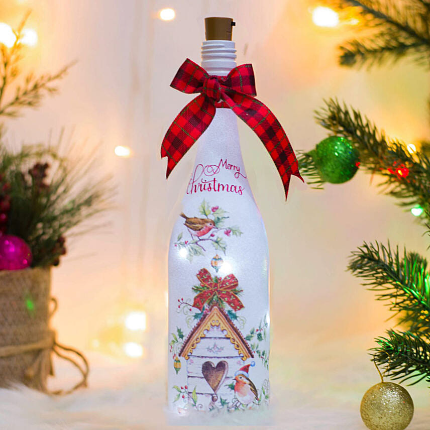 Merry Christmas Hand Painted Glass Bottle