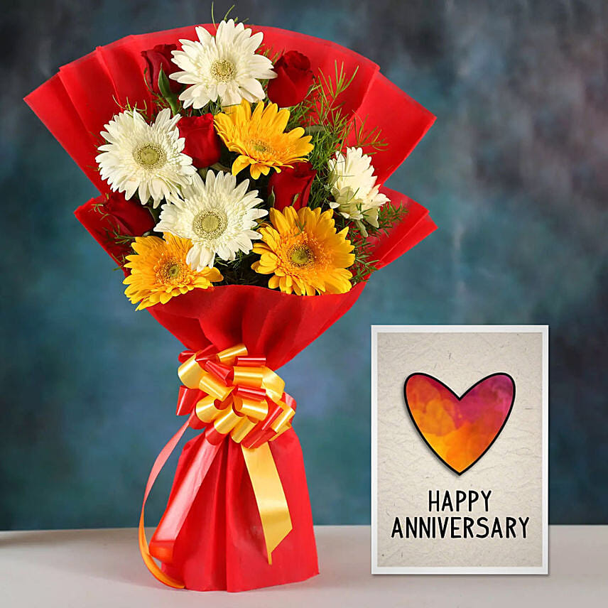 Mix Gerbera Bouquet & Handmade Anniversary Card