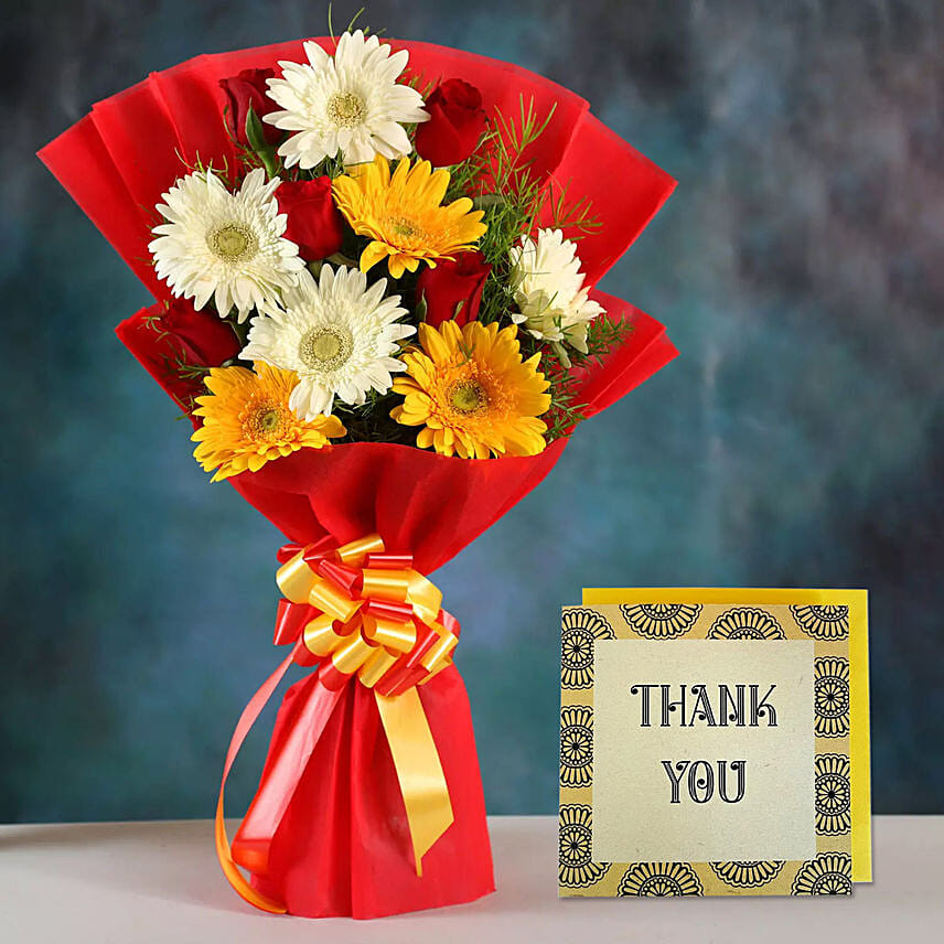 Mix Gerbera Bouquet & Handmade Thank You Card