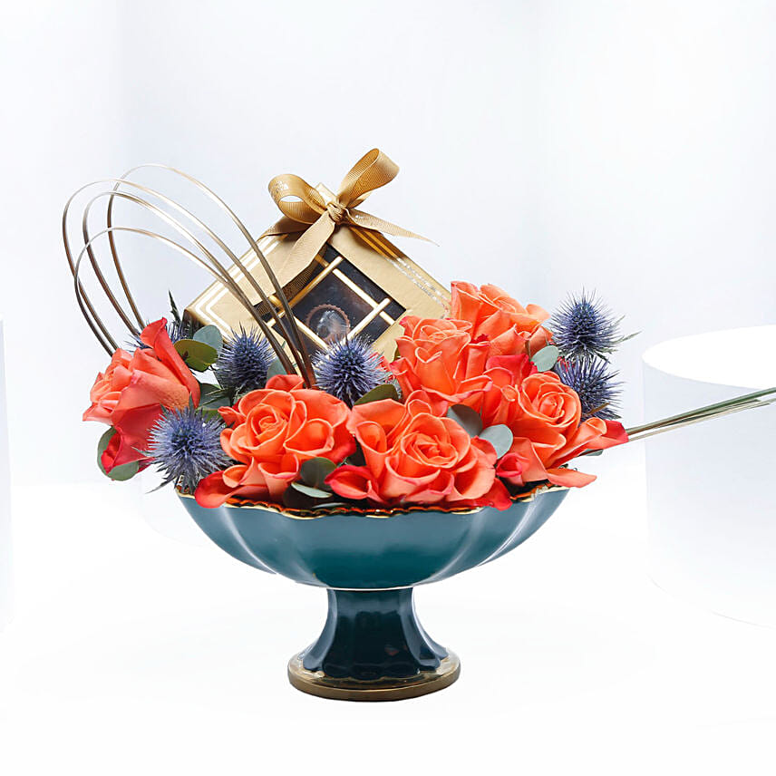 Orange Roses with Empire Chocolate Box