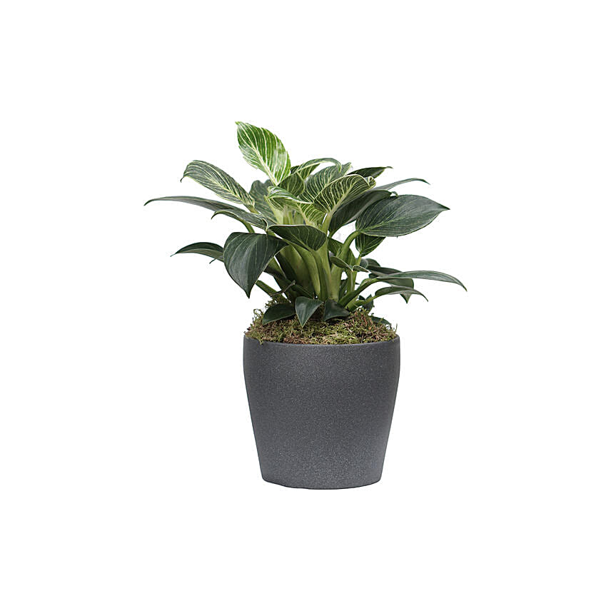 Philodendron Birkin Plant Grey Pot
