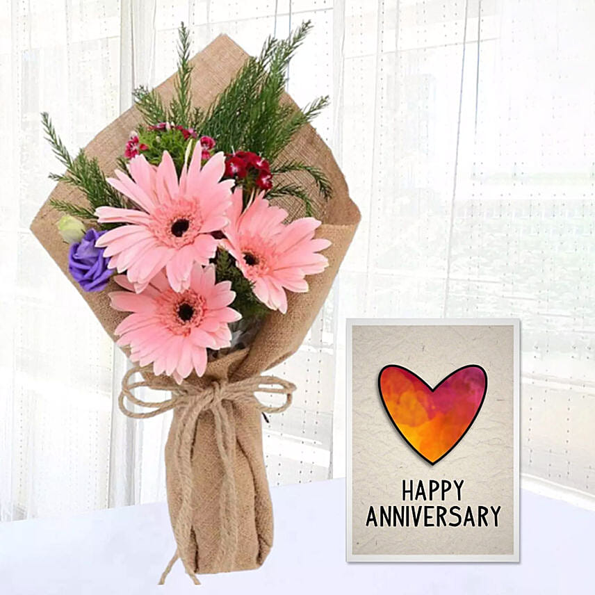 Pink Gerbera Chic Bunch & Handmade Anniversary Card