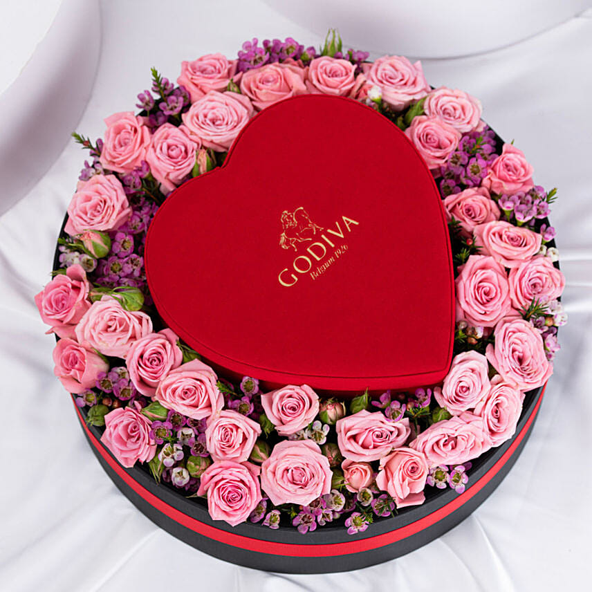 The beautiful Heart Velvet Gift Box holds 7 luscious assorted chocolates, including Godiva favourites.