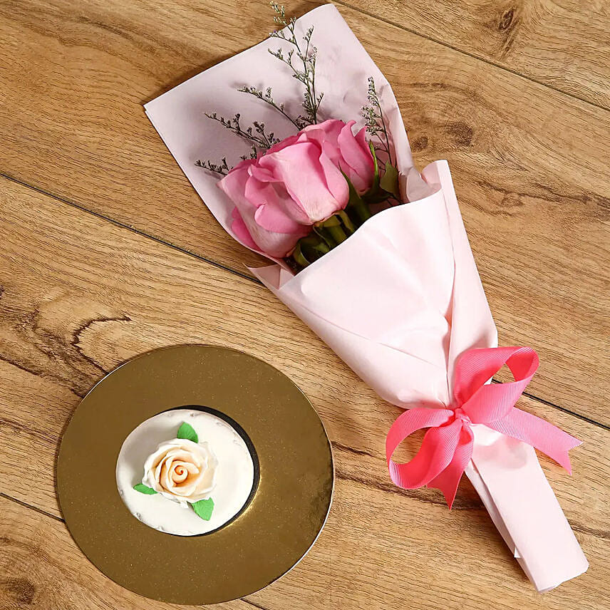 Pink roses denote grace and elegance that are best to express your sweet and poetic romance. Order online this pink rose bouquet and 200 gms mono cake combo to gift your sweetheart on her birthday or Valentine's Day. Such a sweet gesture will definitely put a graceful smile on her face.