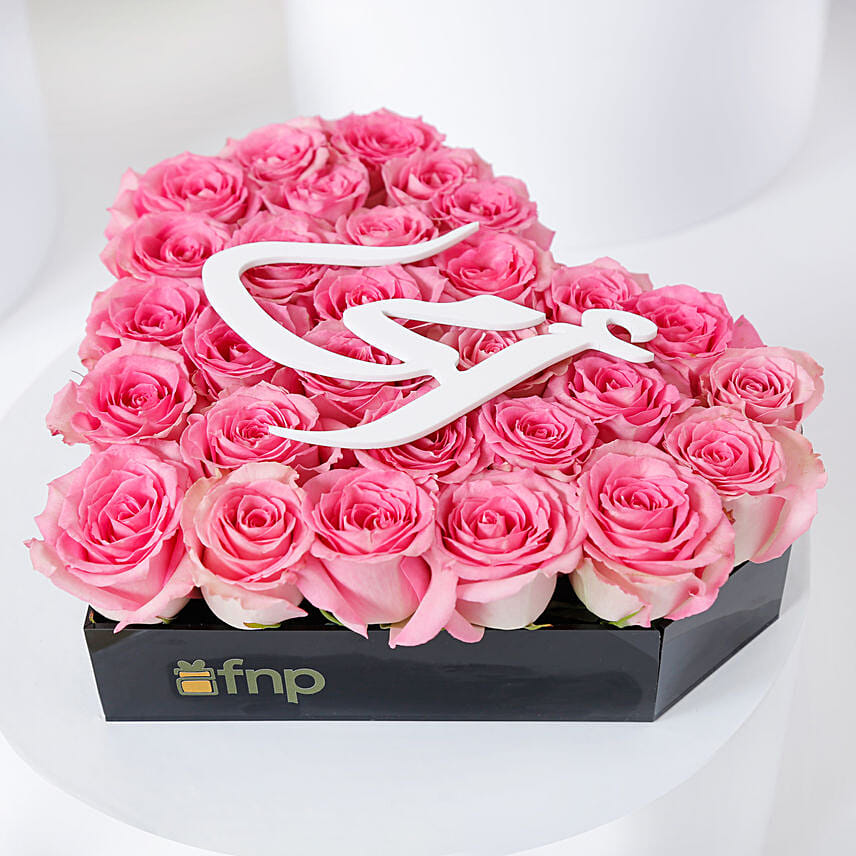 Pink Roses in Heart Shape Box for Mom