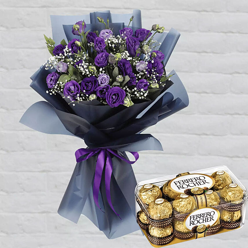 Purple Lisianthus & Ferrero Rocher 16 Pcs