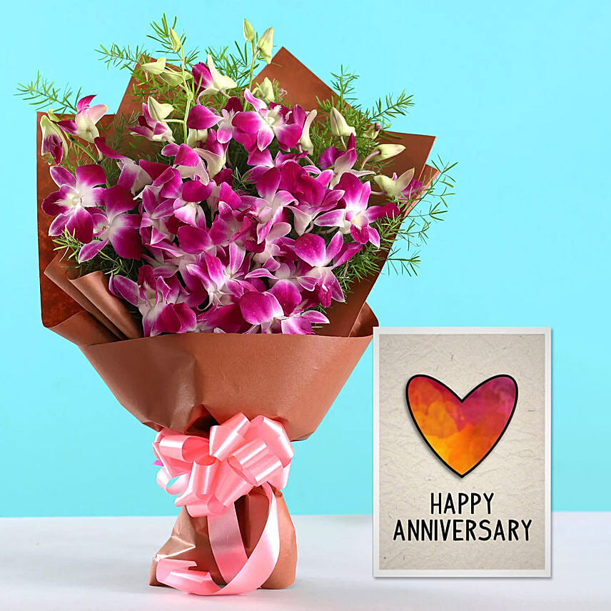 Purple Orchid Bouquet & Handmade Anniversary Card