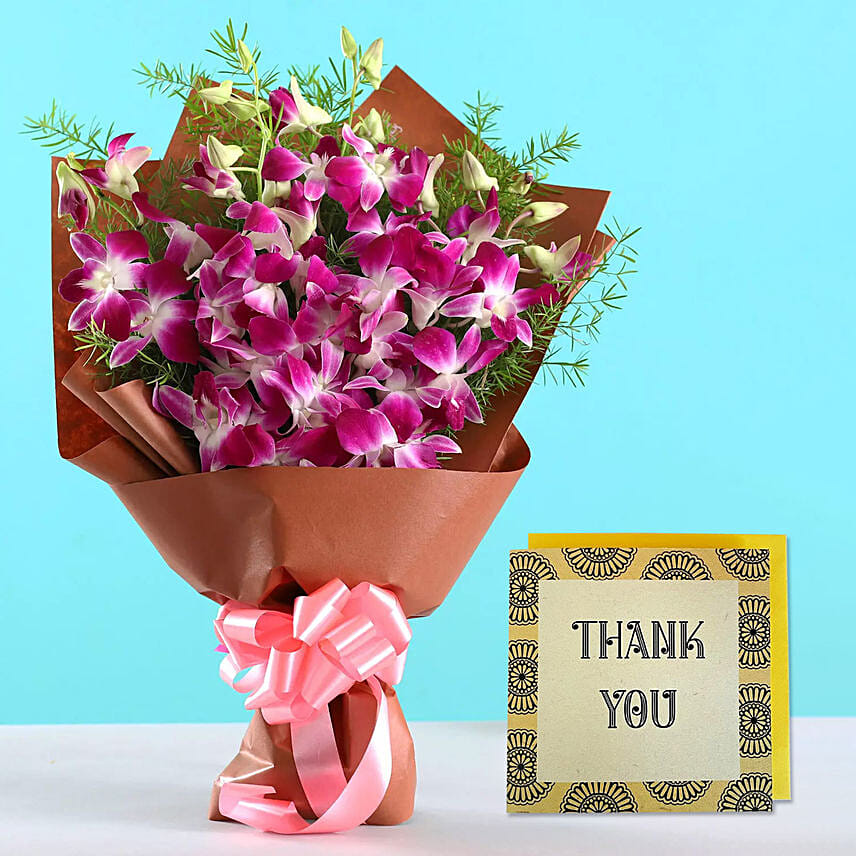 Purple Orchid Bouquet & Handmade Thank You Card