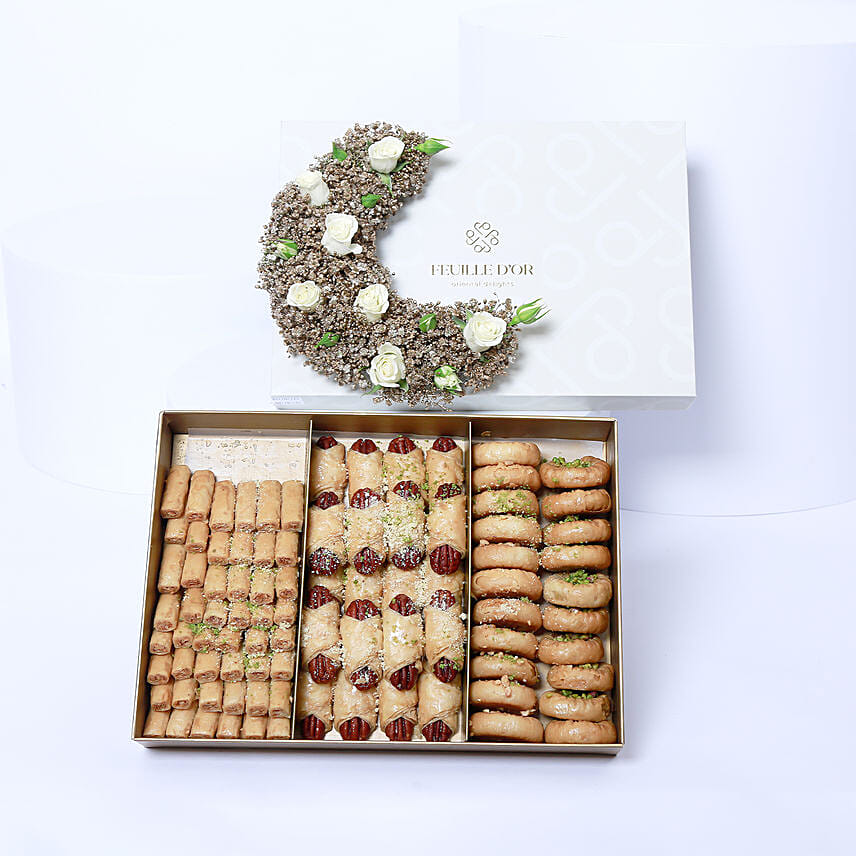 • Box of Baklawa Fingers Stuffed with Almonds, Baklawa Bracelets with Pistachio and Cashews