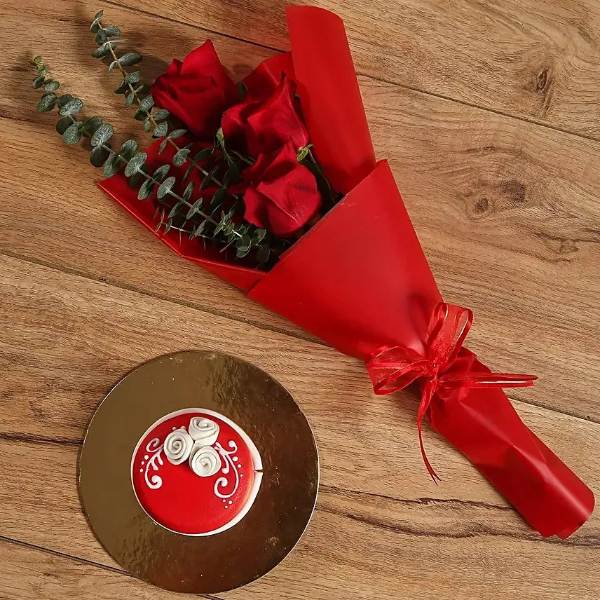 There is nothing more classic than the red roses bouquet and a designer mono cake to win the heart of your lady love. The flowers will absolutely mesmerize her senses to the core and the yummy cake will delight her taste buds in a great manner. Order online this 200 gms mono cake and flowers combo to offer your sweetheart to take your relationship to a whole new level.