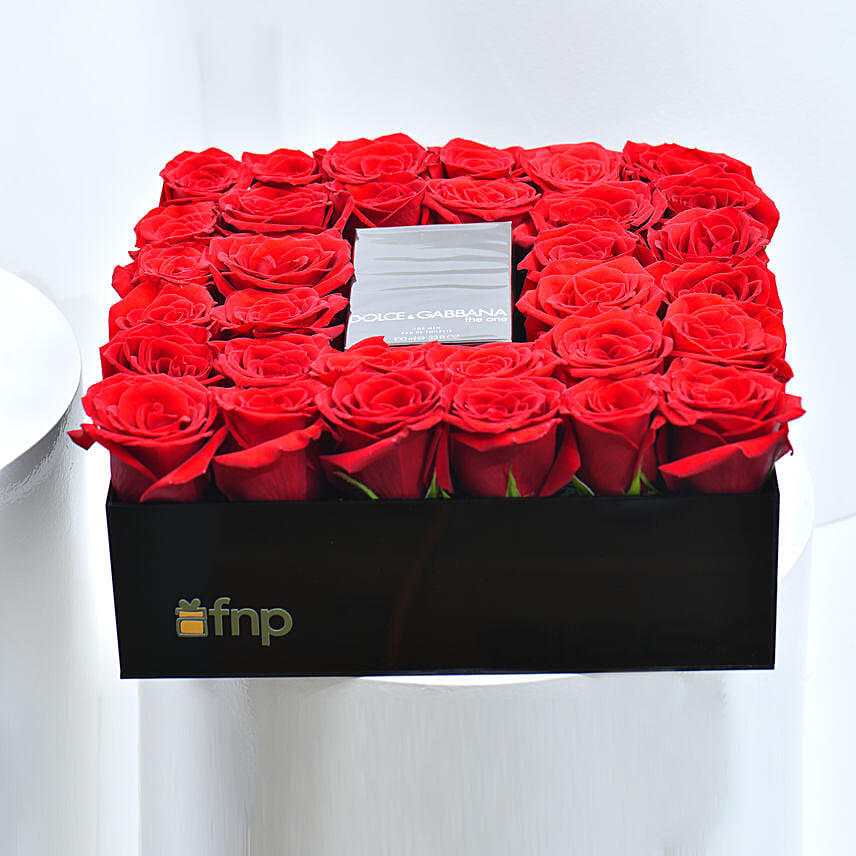 Red Roses and Perfume Box Arrangement