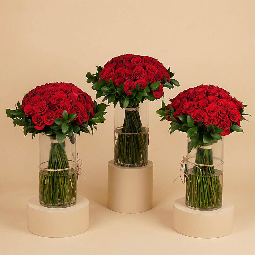 Red Roses Arranged in Glass Vases