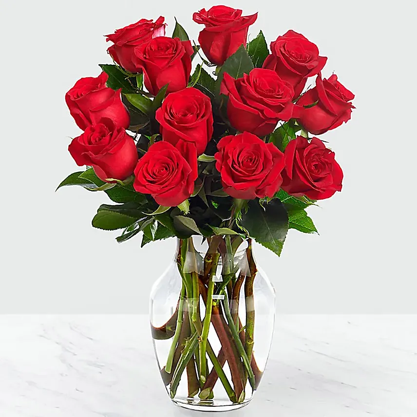 • 12 Red Roses Arranged in a Vase