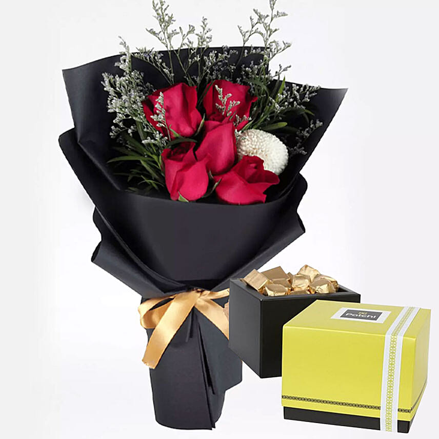 Romantic Red Roses & Patchi Chocolates 500 gms