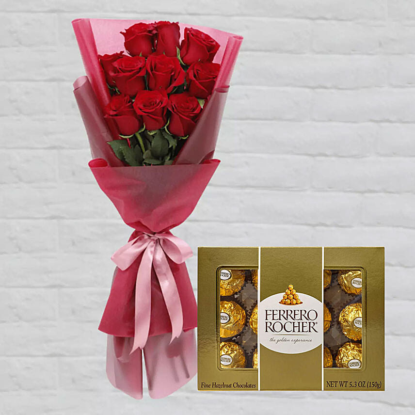 Romantic Red Roses Posy & Ferrero Rocher 12 Pcs
