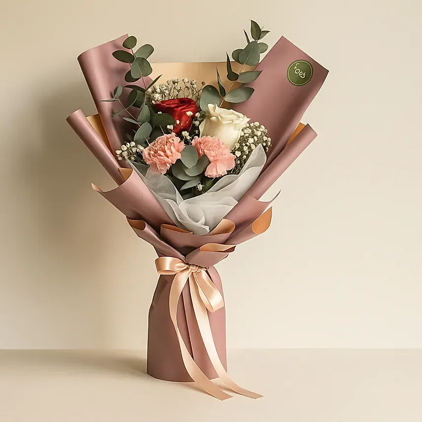 • Beautifully Wrapped in Double Tone Wrapping Sheets and Tied with Satin Ribbon