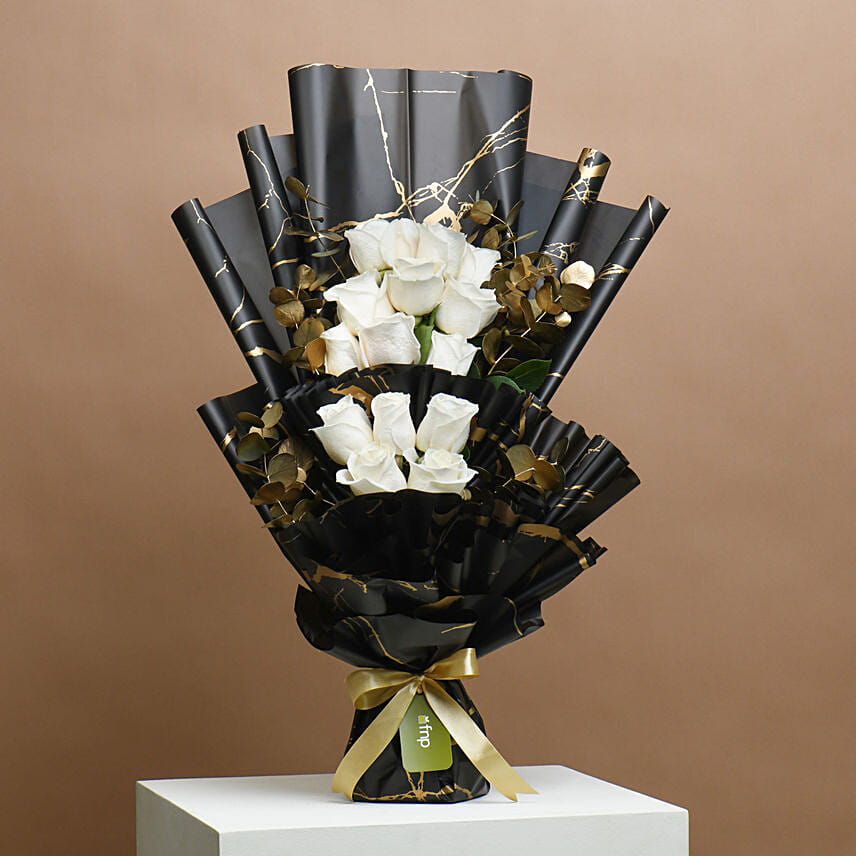 • Beautifully Wrapped In Black Marble Wrapping Sheets & Tied with Golden Ribbon