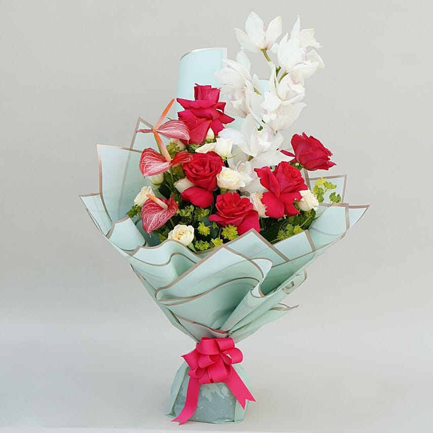 • A bright and colourful flower bunch to send ‘Good Vibes’. This rainbow-inspired bouquet will flourish for days to come, keeping the happy aura in the home alive. The flowers are handpicked and arranged with perfection to make sure they look vibrant at all times.