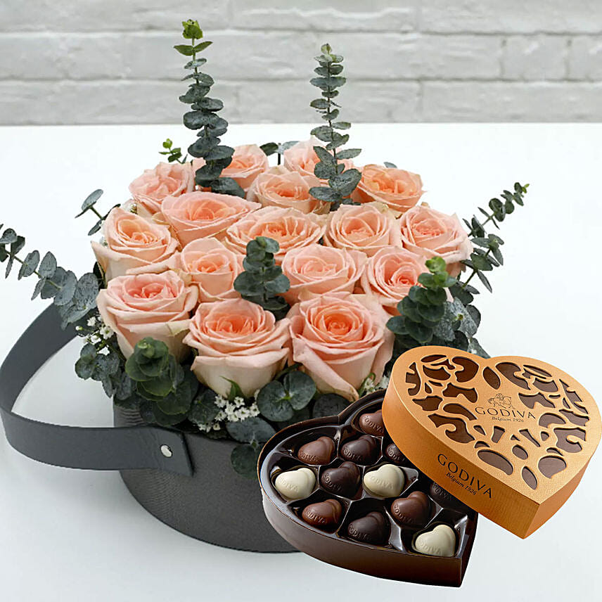 Sweet Pink Roses & Godiva Chocolates 500 gms