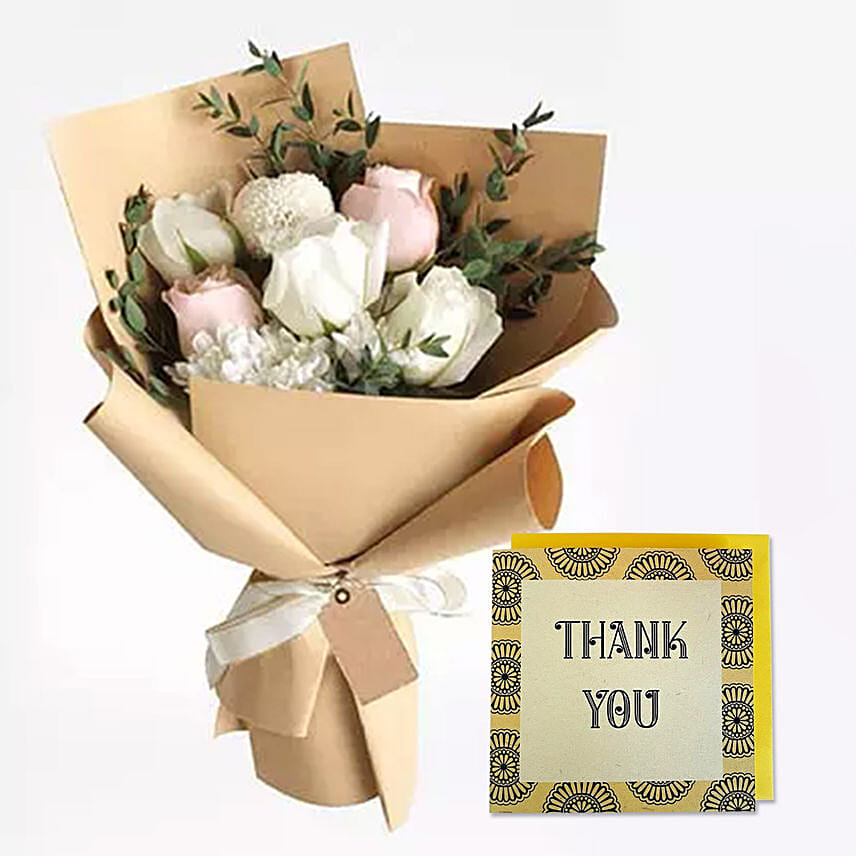 Sweet Roses Bouquet With Handmade Thank You Card