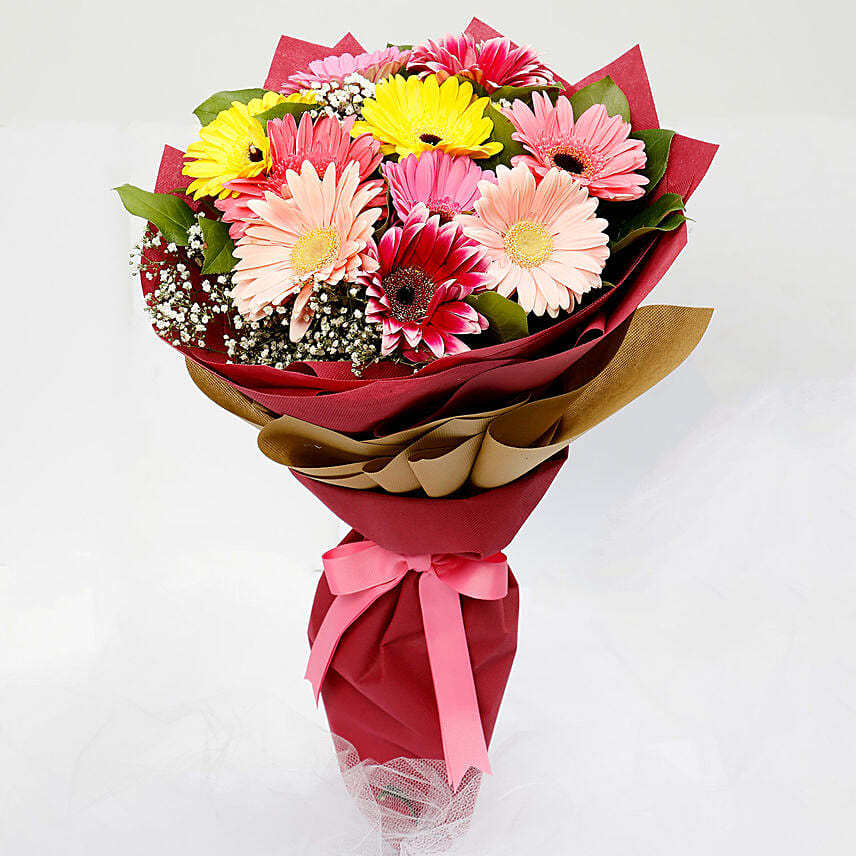 Ten Gerbera Flowers Bouquet