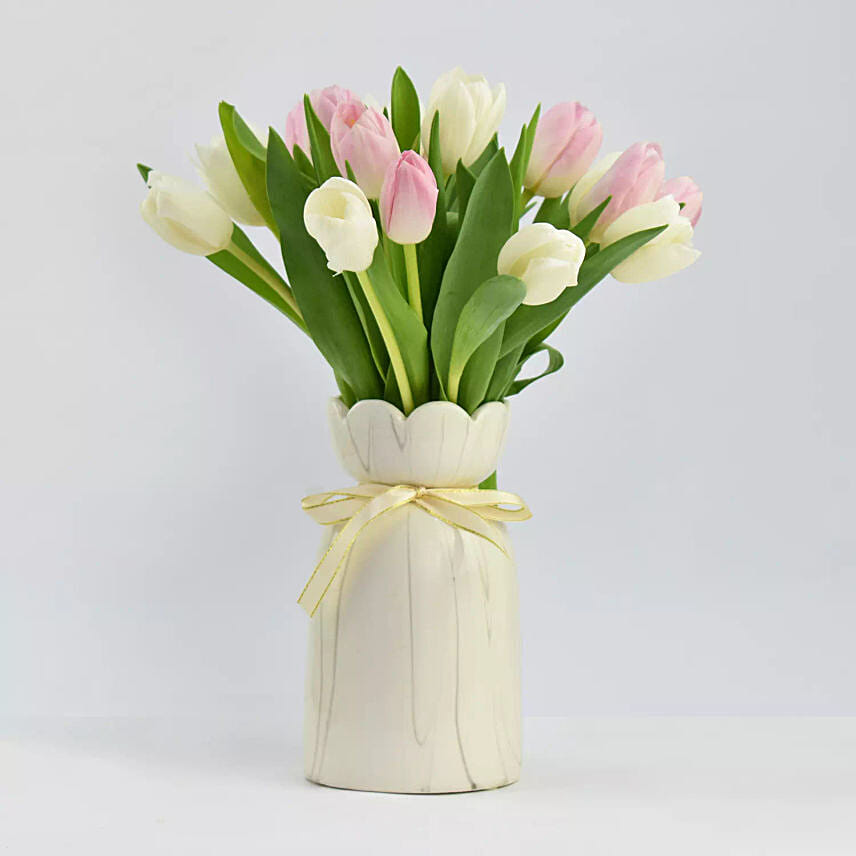 • 10 Each White and Pink Tulips