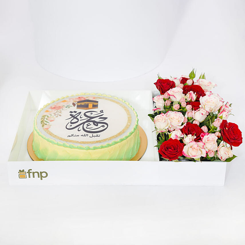 Umrah Mubarak Flower & Cake Gift Combo