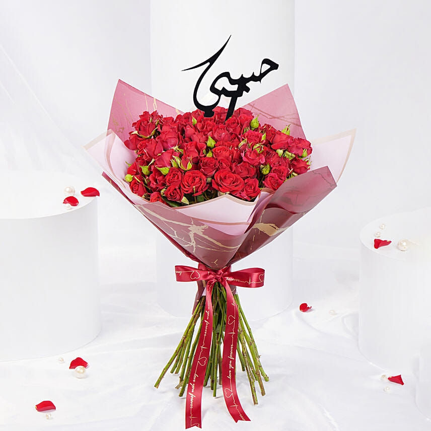 Valentine Red Spray Roses Bouquet | Black Love Topper
