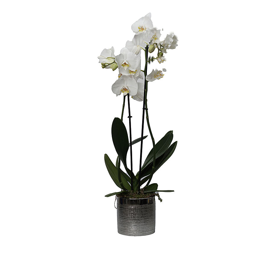 White Phalaenopsis Plant Grey Pot