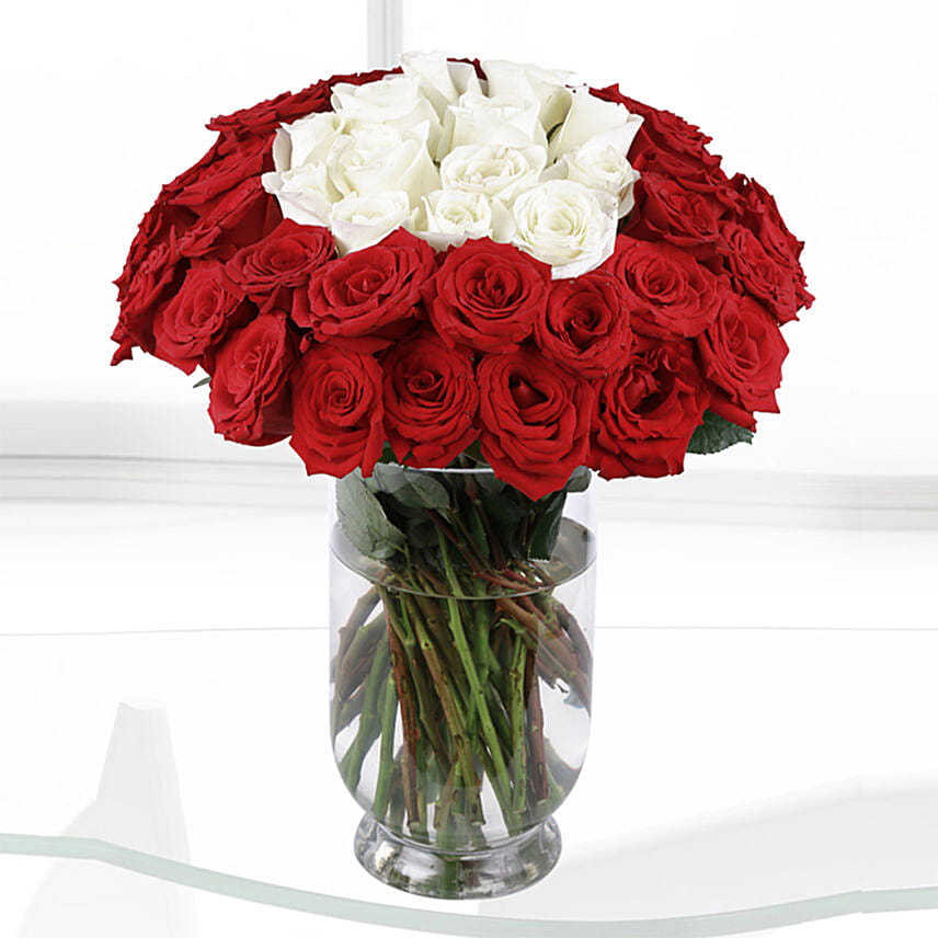 White & Red Roses Vase- Deluxe