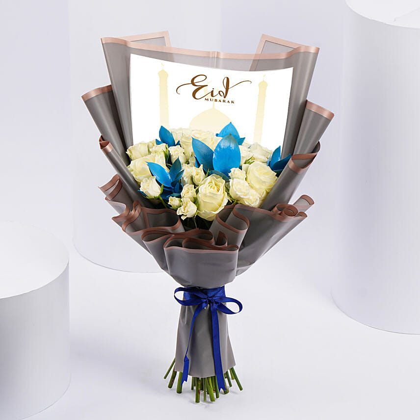 White Roses Bouquet Eng | Eid Mubarak