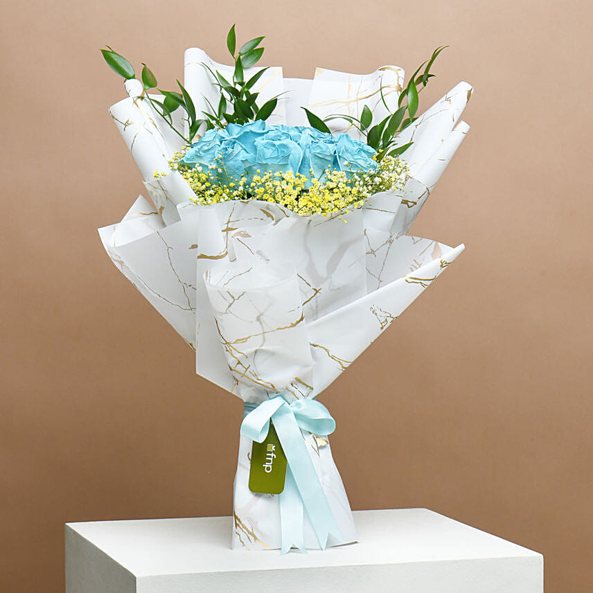 • Beautifully Wrapped In Marble White Wrapping Sheets & Tied with Blue Ribbon