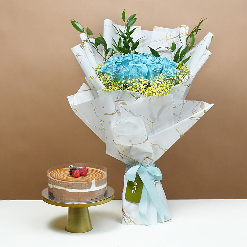 White Roses in a Blue Sea & Cake Surprise