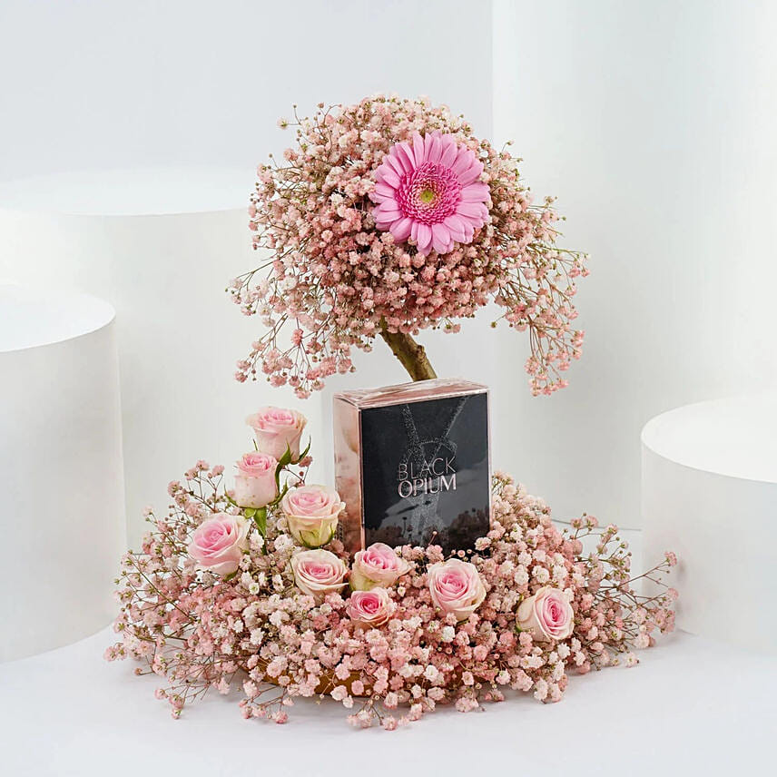 YSL Black Opium Perfume For Women With Pink Flowers