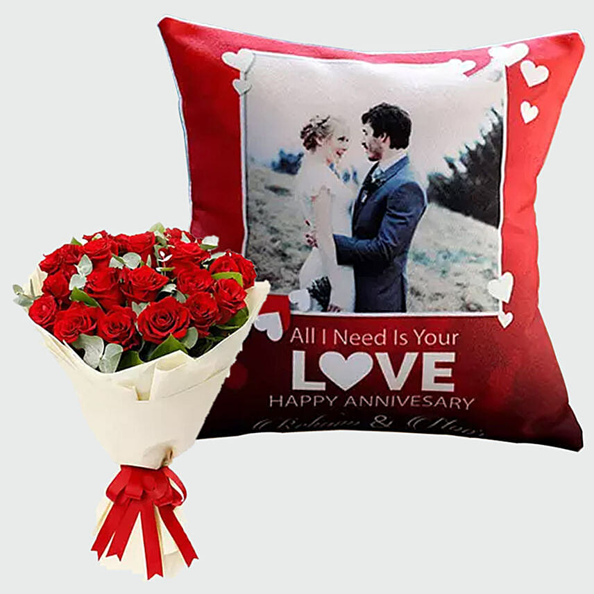 Adorable Roses And Personalised Cushion Combo