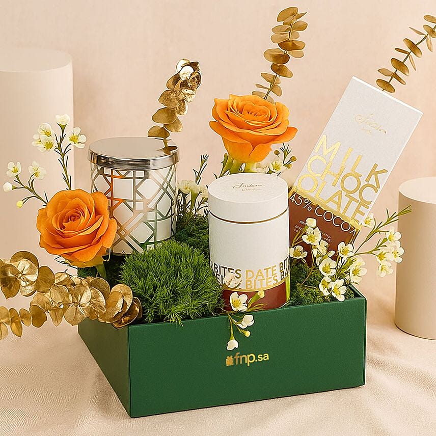 Enjoy luxury and sophistication with the Bateel Luxury Gift Set Tray, where the beauty of flowers meets the finest flavors from Bateel in a perfect arrangement. A selection of the finest chocolates from Bateel with luxurious dates, to give the recipient a unique taste experience and moments of pure pleasure.