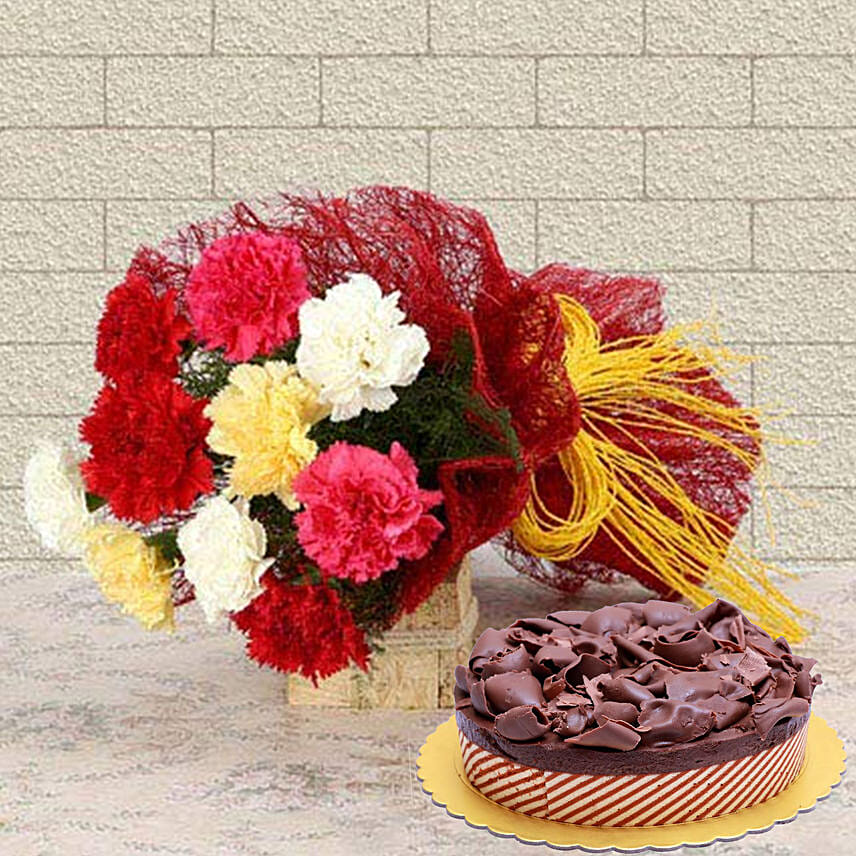 Beautiful Carnations & Choco Mousse Cake 4 Portions