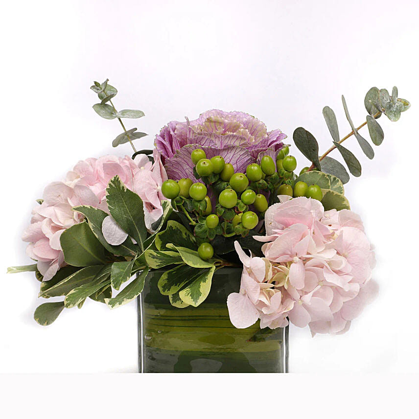 Beautiful Pink Hydrangea in Glass Vase