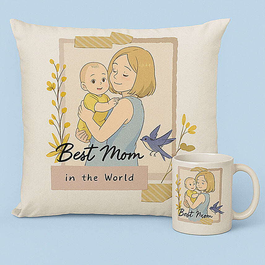 Express your love and affection for your mother with this personalized gift featuring a beautiful pillow and matching mug. Both gifts can be personalized with a favorite photo surrounded by beautiful floral designs and a loving message to your mother that says, The Best Mom in the World. This thoughtful gift is perfect for expressing your love and appreciation for the special mom in your life.