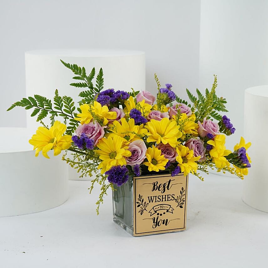 Add a touch of beauty and joy to your gifts with the Best Wishes Rose Vase, a flower arrangement filled with warm feelings. Perfect for birthday celebrations, or sending wishes for a new home or new job, this elegant gift will leave a lasting impression.