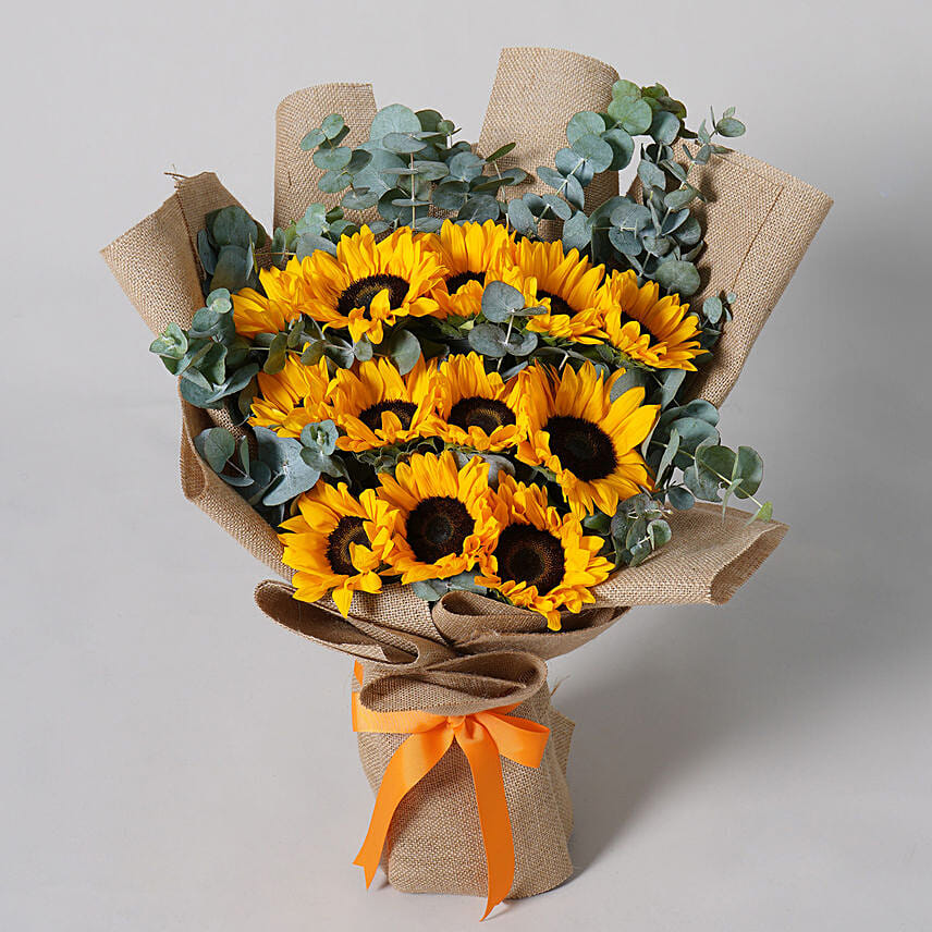 • Brighten up someone’s day with this joyful bouquet. The cheery sunflowers are the perfect way to show loyalty and admiration, as the flower language suggests. This charming bloom bunch will spread happiness and uplift your loved one's mood instantly.