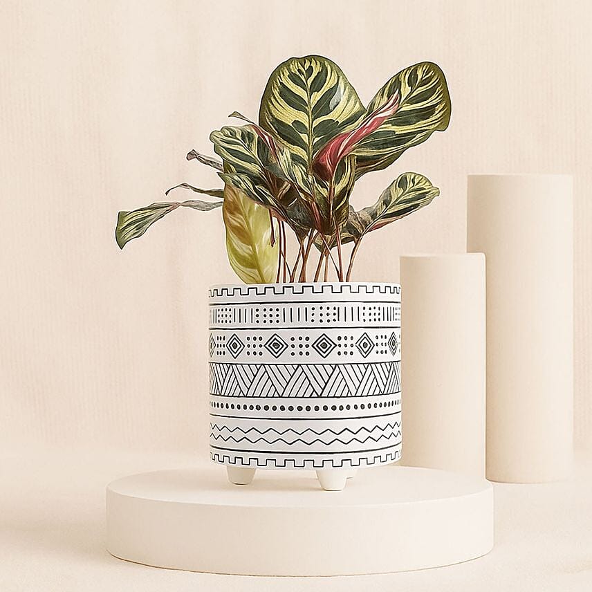 Add a touch of natural elegance to your home with this Classia plant in a stylish brown pot from Autantik. The distinctive Calathea foliage, also known as the Maranta plant, with its luxurious ceramic pot, adds a touch of sophistication and tranquility to any interior space.