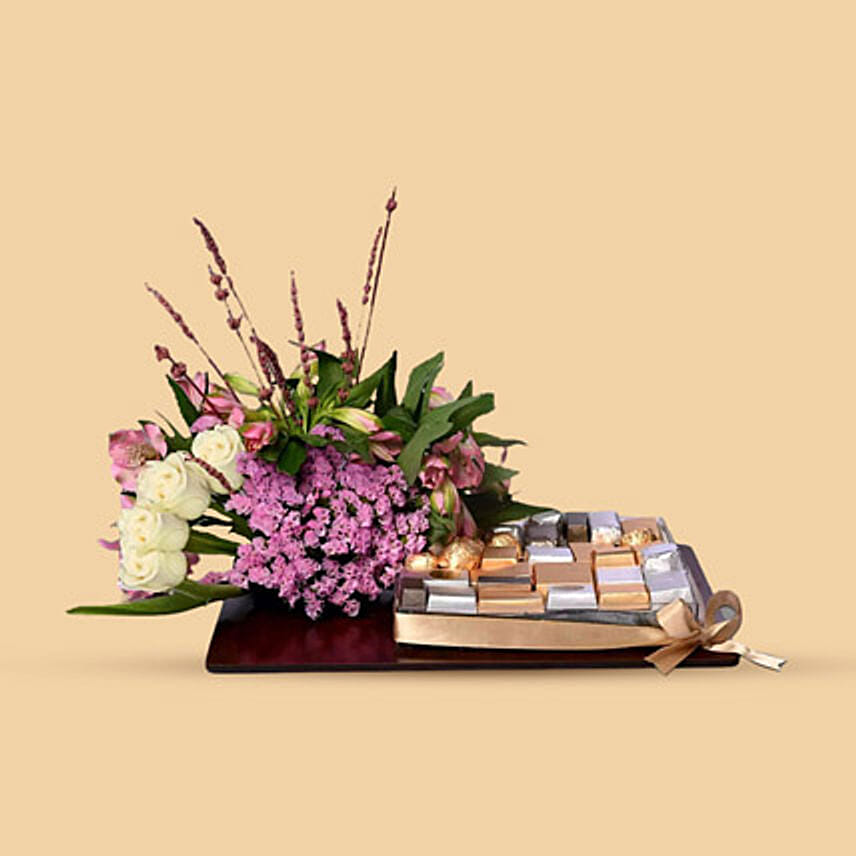 Chocolates And Mixed Flowers Tray