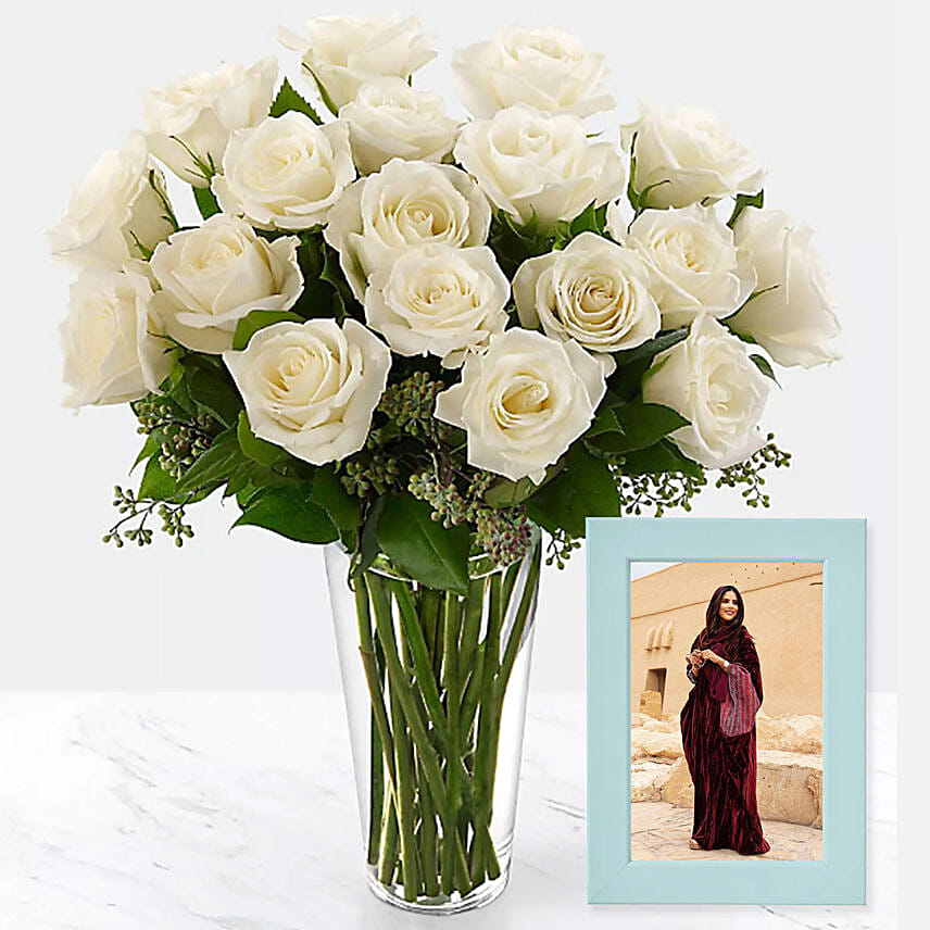 Classy Photo Frame And White Roses