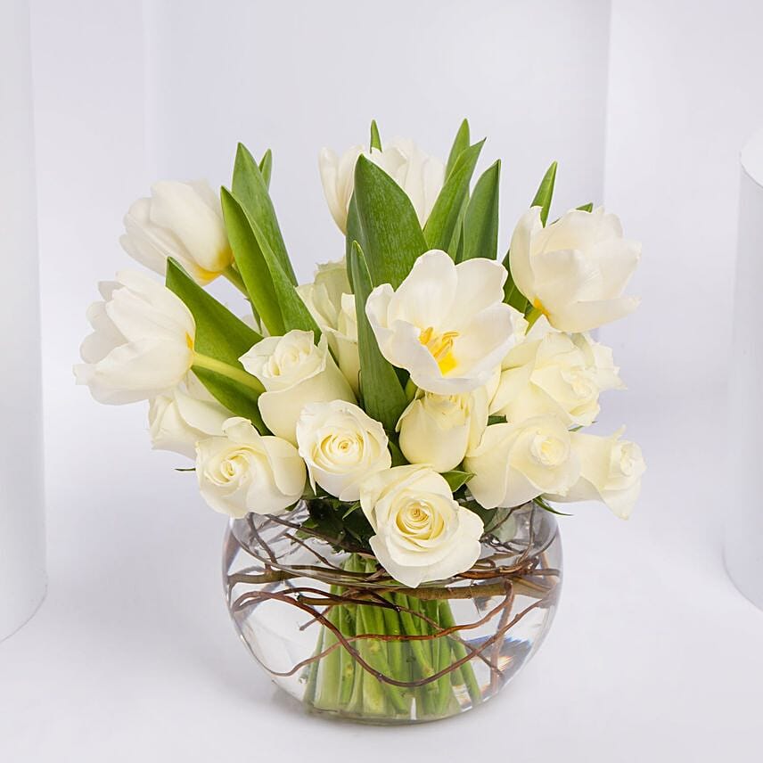 Elegant White Roses & Tulips Vase