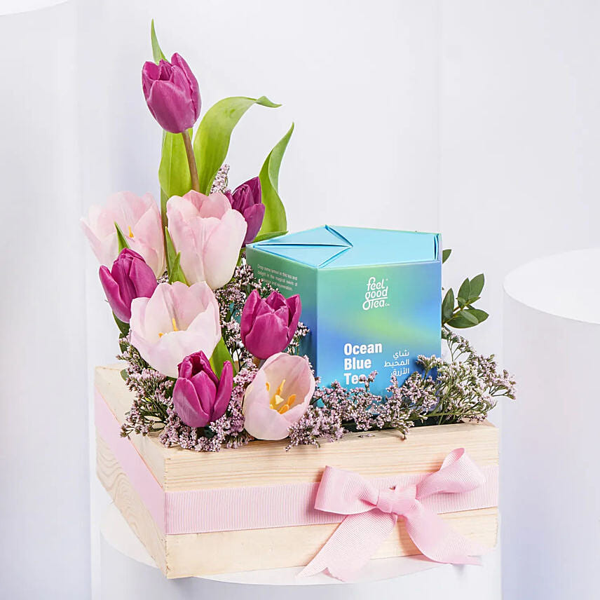 The perfect and elegant way to express your love for your mother—a luxurious arrangement of blooming tulips, in elegant and elegant packaging with the most beautiful tea products from Feel Good Tea. An exceptional and expressive gift on the special occasion of Mother’s Day!