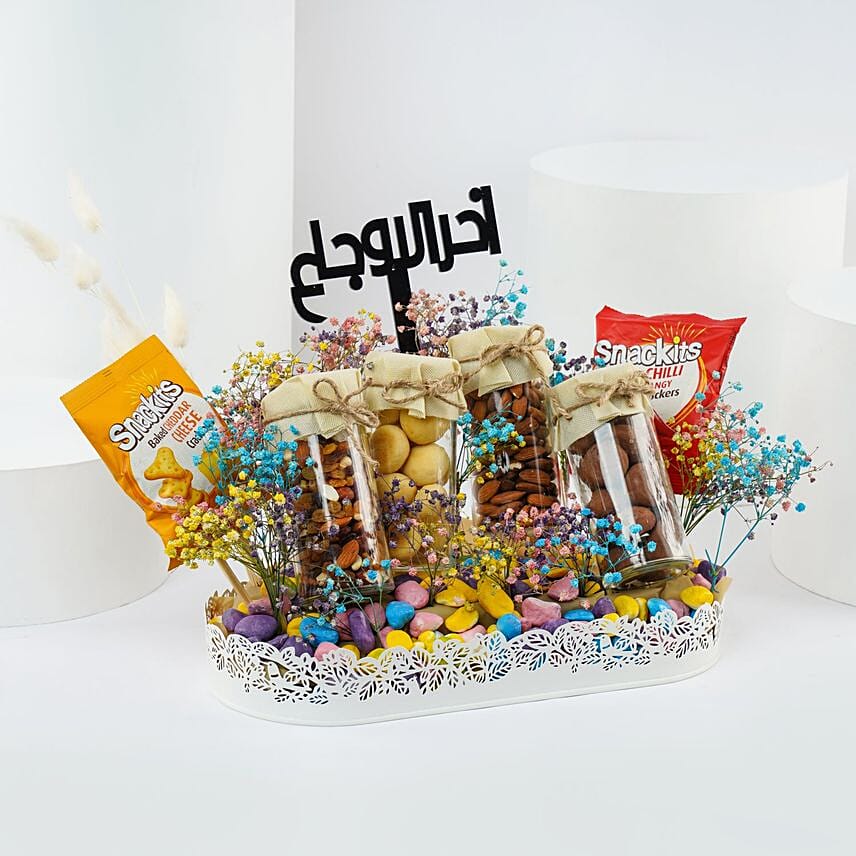 Product DetailsGive someone a touch of wellness with this sick visit gift basket of mixed nuts and cookies. Filled with a delicious assortment of nuts and biscuits with a warm message, this cozy basket makes the perfect get-well gift package.