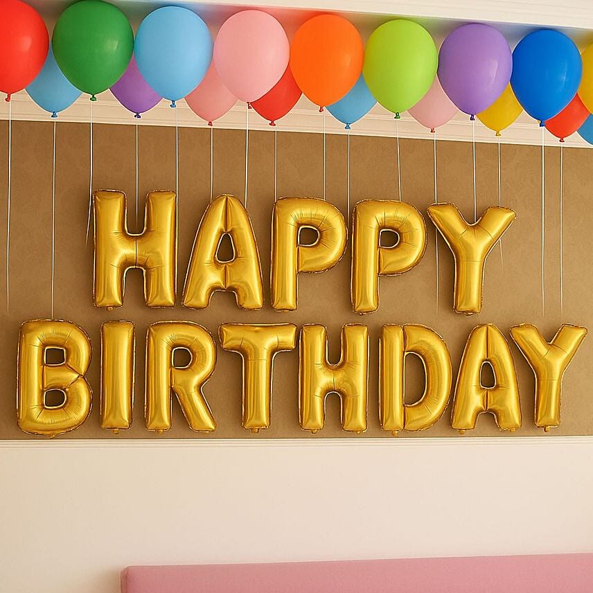 Golden Letter Birthday Balloons With 50 Colorful Balloons